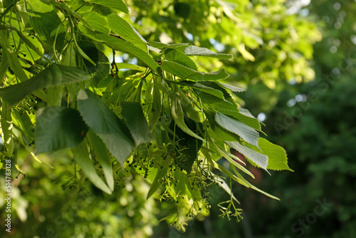 Obraz premium Closeup view of blossoming linden tree outdoors on sunny spring day