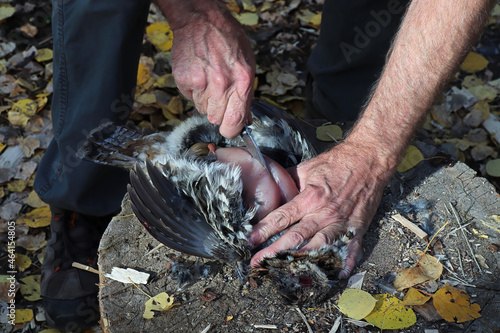 Obraz premium Closeup view of cutting wild chicken breast out