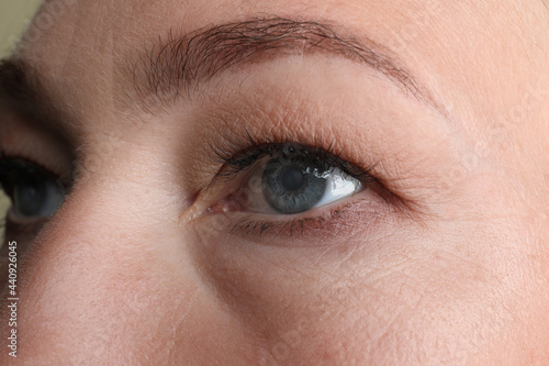 Fototapeta premium Closeup view of mature woman with eye cataract