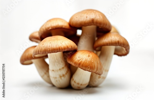 © Vadym, Fototapeta premium Closeup view of several brown beech mushrooms, shimeji mushrooms on white background. Mushrooms clustered together, natural texture. Isolated, look fresh. Image perfect for beauty of edible fungi.