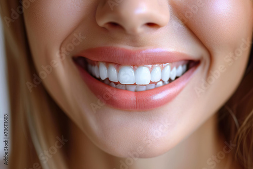 Obraz premium Closeup view of smiling young woman with whitening teeth.