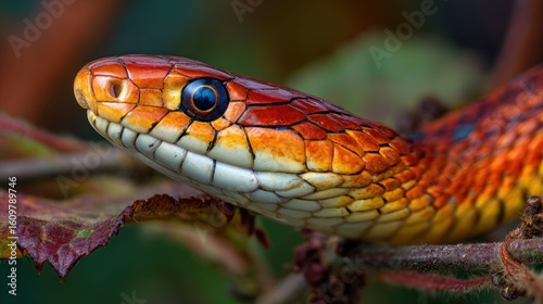 © muhammad, Fototapeta premium Closeup view of vibrant colored snake