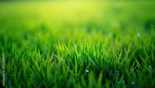 © Viktor, Fototapeta premium Closeup view of vibrant green grass. Green texture of meadow lawn visible. Natural, fresh feel of healthy landscape in summer spring. Ideal background for eco themes. Empty space for creative