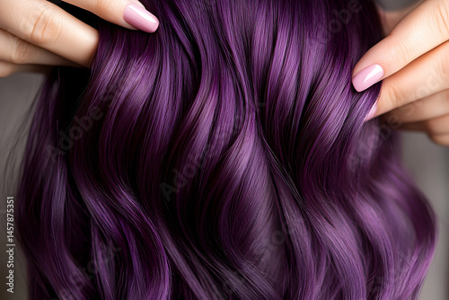 Obraz premium Closeup view of vibrant purple wavy hair soft lighting smooth texture