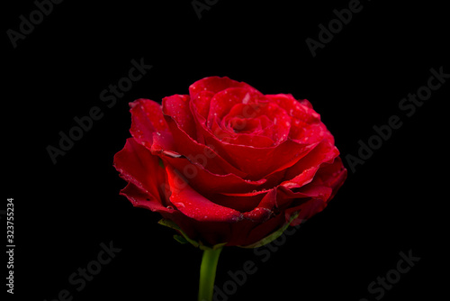 © stockyme, Fototapeta premium Closeup view Red Rose isolated on black banner template