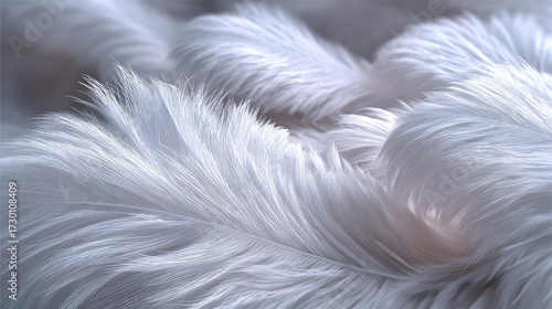 © PBMasterDesign, Obraz premium Closeup white feathers background for calm concept. Soft, fluffy white fur creates a delicate, tranquil aesthetic.