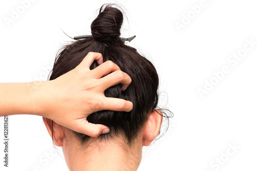 Obraz premium Closeup woman hand itchy scalp, Hair care concept