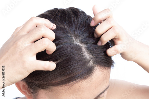 Obraz premium Closeup woman hand itchy scalp, Hair care concept