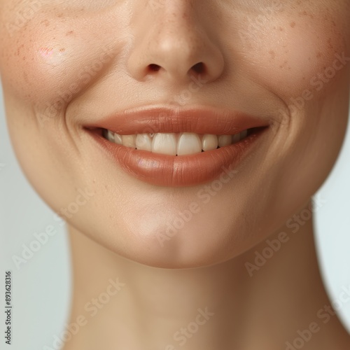 © Nathasa, Obraz premium Closeup women smile showing white tooth with empty background. Dentist care concept.