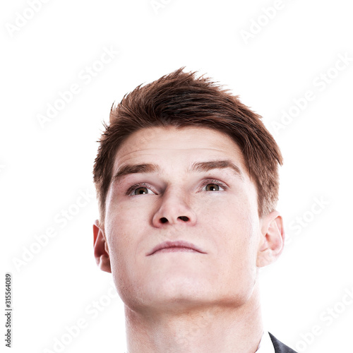 © yurolaitsalbert, Obraz premium closeup.young man looking up at copy space