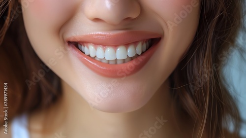 Obraz premium closeup young woman with beautiful smile, healthy white teeth, cosmetic...