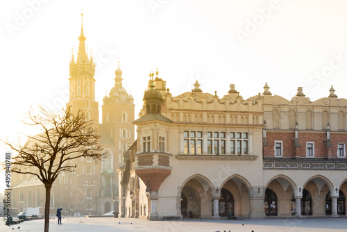 Fototapeta premium Cloth Hall and St. Mary's Basilica on the Main square, Kraków, (UNESCO), Poland