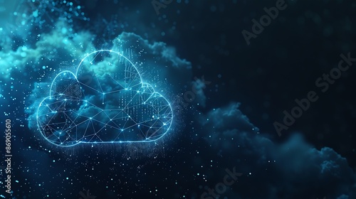 © The Little Hut, Obraz premium Cloud and edge computing technology concept cybersecurity data protection White cloud with binary code connected polygons on dark blue background Connect business networks in the digit : Generative AI