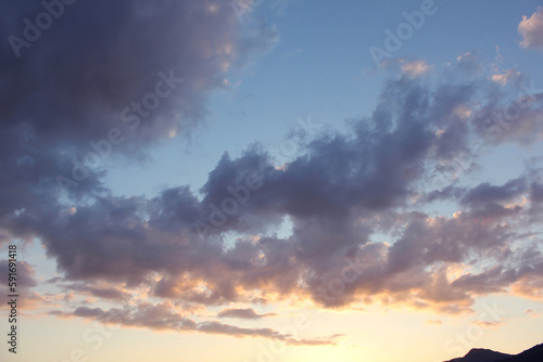 © binimin, Fototapeta premium cloud and vanilla sky background with dark mountain silhouette