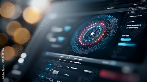 © well, Obraz premium Cloud based Futuristic Digital Editing Interface with Glowing Holographic Visualization and Machine Learning Analytics Advanced user interface design with cutting edge data processing