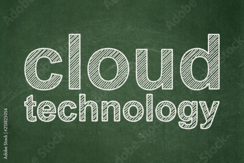 © Maksim Kabakou, Fototapeta premium Cloud computing concept: text Cloud Technology on Green chalkboard background