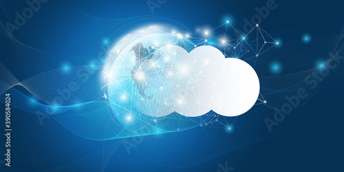 Obraz premium Cloud Computing Design Concept - Digital Connections, Technology Background with Earth Globe and Geometric Network Mesh