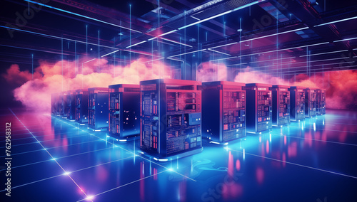 © Anna, Obraz premium Cloud computing in data center clouds and network