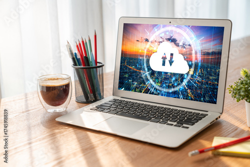 Fototapeta premium Cloud computing software for modish remote work and personal data storage