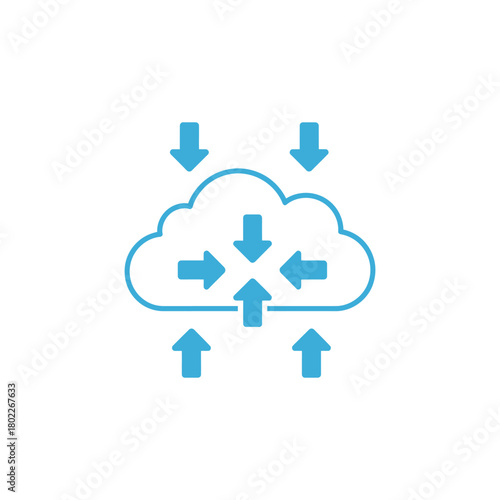 Fototapeta premium Cloud computing system processing data with arrows pointing in and out, representing data flow and connectivity in a modern, minimalist style.