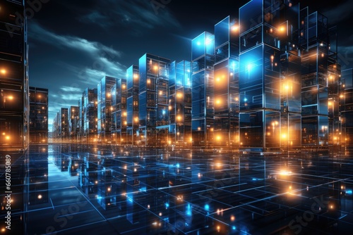 © itchaznong, Obraz premium Cloud computing transfer big data on internet. futuristic digital technology .Generative AI