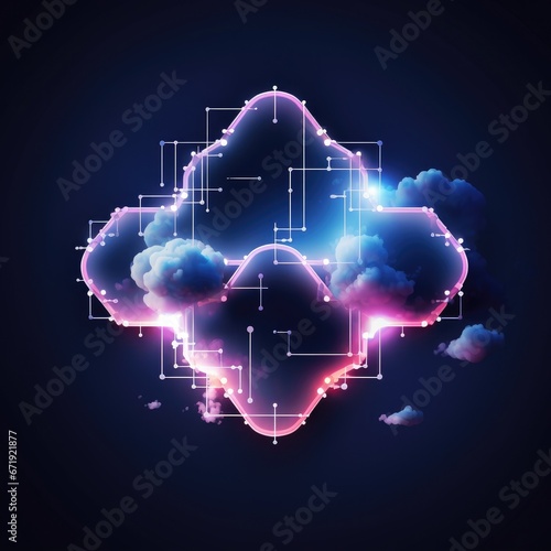© itchaznong, Obraz premium Cloud computing transfer big data on internet. futuristic digital technology .Generative AI