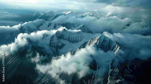 Fototapeta premium Cloud covered mountains seen from above