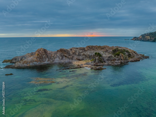 © Merrillie, Fototapeta premium Cloud-covered sunrise over Guerilla Bay