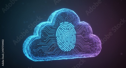 © Seree , Obraz premium Cloud Data Security Abstract - Cybersecurity concept, data protection, cloud computing, fingerprint, network security. Symbolizing safety, privacy, and access control in the cloud