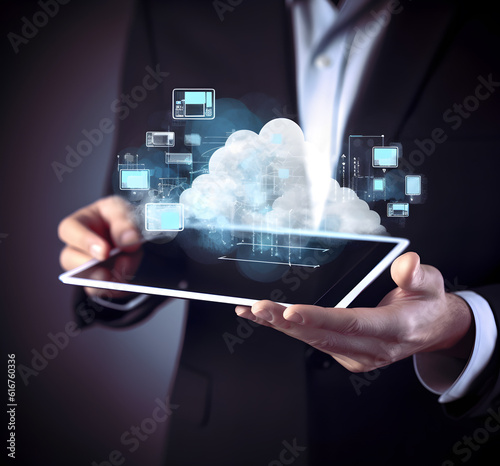 Fototapeta premium Cloud data storage, cloud computing and data transfer concept. AI generated