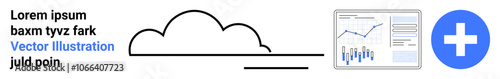 © robu_s, Obraz premium Cloud icon, bar and line charts, blue medical cross symbol. Ideal for data analysis, cloud computing, business intelligence, data storage, medical applications, and tech solutions. Landing page