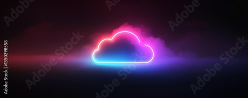 Obraz premium Cloud icon, logo design with neon glow effect on a black background, in a simple and minimalistic style Generative AI