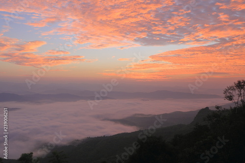 © kosin, Fototapeta premium Cloud lighting with orange color on brightness sky