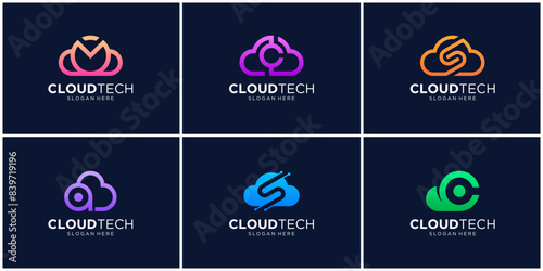 Naklejka premium Cloud logo letter icon set. Abstract tech symbol logo design.