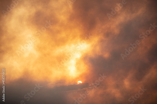 © viperagp, Fototapeta premium Cloud of smoke from fire on sunset
