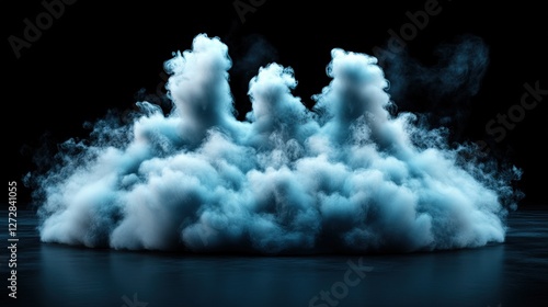 © Rattapoom, Naklejka premium Cloud of white smoke on a black background in a studio setting with dramatic lighting and effects