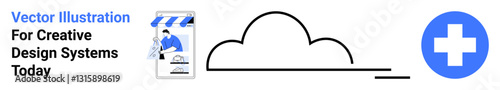© robu_s, Fototapeta premium Cloud outline connects digital design and health app screen, emphasizing modern tech use. Ideal for healthcare, tech innovation, creativity, cloud services, remote solutions, medical, flat landing