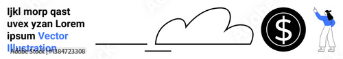 © robu_s, Obraz premium Cloud outline with dollar sign and person gesturing. Ideal for technology, finance, savings, digital tools, data management, e-commerce, simple landing page