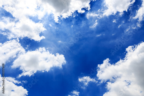 © kajonsakt, Fototapeta premium Cloud over beautiful blue sky. Copy space. Background.