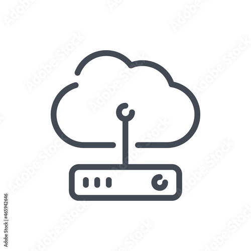 © NikWB, Fototapeta premium Cloud service with connection to server line icon. Online storage hardware vector outline sign.