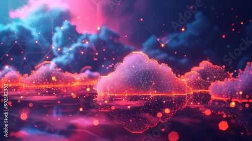 Obraz premium Cloud services depicted as clouds providing various digital services, such as...
