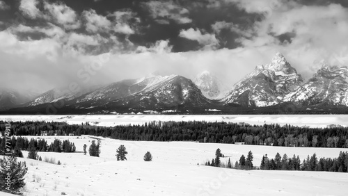 Obraz premium Cloud shrouded Tetons; Grand Teton NP; Wyoming