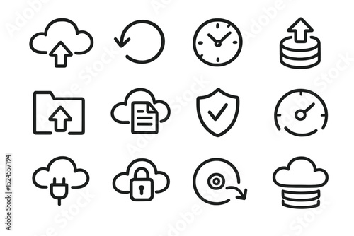 Fototapeta premium Cloud storage and backup icons on olive green background