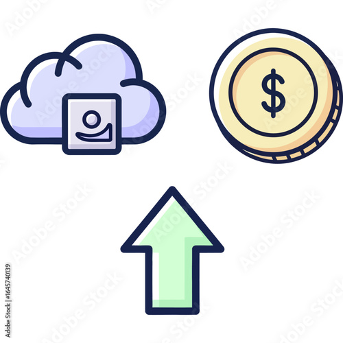 © Promm, Obraz premium Cloud Storage and Financial Growth Concept Upload Data to Earn, Financial Technology Symbol