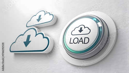 © halimastock07, Fototapeta premium Cloud storage button with download icons on a textured wall