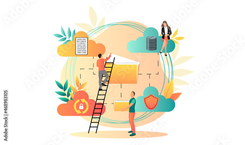 © GN.STUDIO, Obraz premium Cloud storage design concept. Internet data exchange technology. Digital information protection service. Different device secure data transmission. Abstract wireless database. Vector illustration