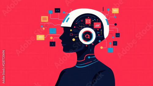 © saichon, Fototapeta premium Cloud storage Globalization communication network Futuristic illustration of person with digital brain and technology elements