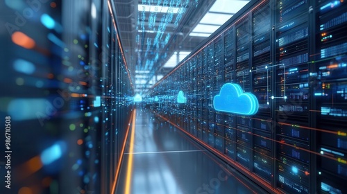 © Nawarit, Fototapeta premium Cloud storage solutions being used to manage data, digital style, sharp focus, bright lighting, high detail