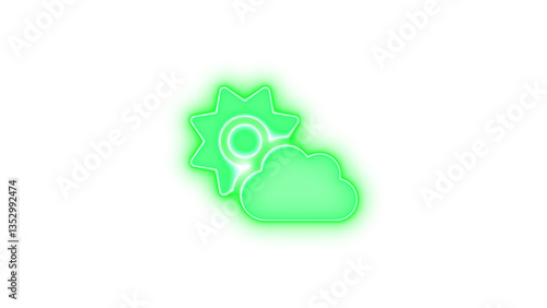 © ميسبسف, Obraz premium Cloud sun icon green color glowing neon on transparent background