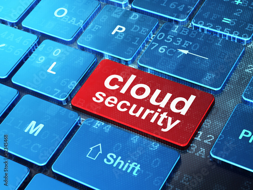 Fototapeta premium Cloud technology concept: Cloud Security on computer keyboard ba